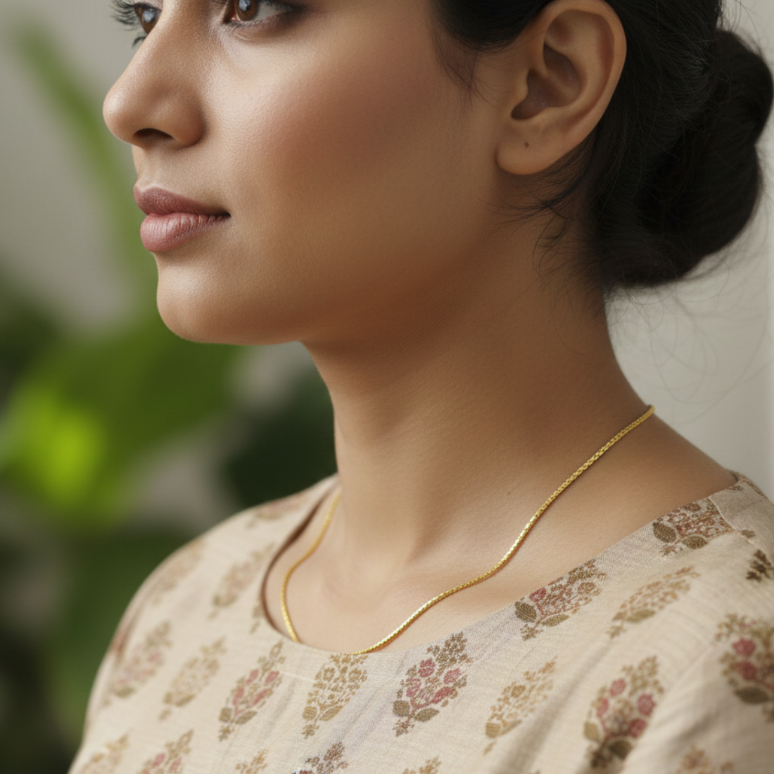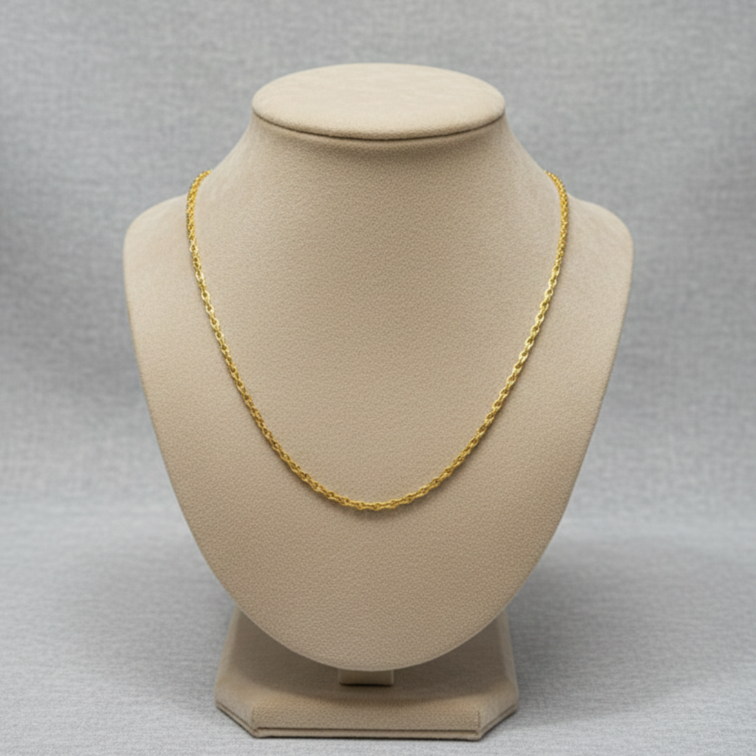 Stylish 22K yellow gold Figaro chain necklace with alternating long-short links for distinctive pattern and shine. Perfect for daily or festive wear on Meesho and Flipkart, this chain adds Italian flair to any look.
