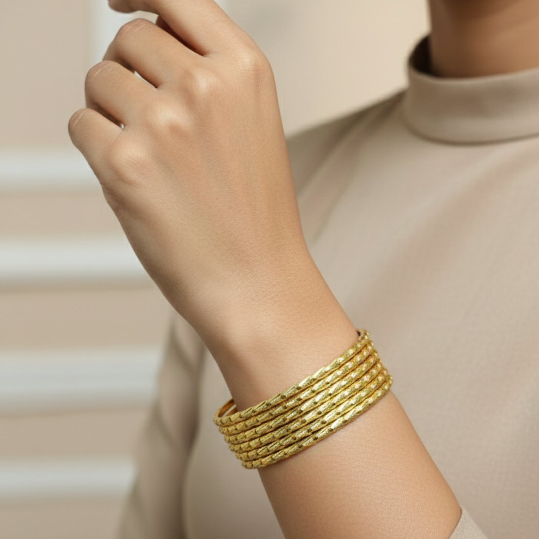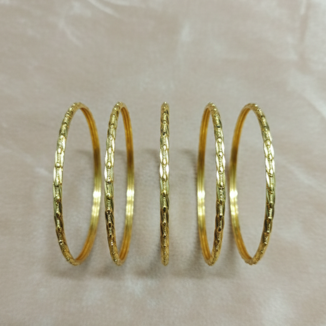 Sophisticated 22K yellow gold bangle set with fine beaded texture for subtle luxury. Ideal for wrist stacking and versatile styling on Meesho, Amazon, Flipkart.