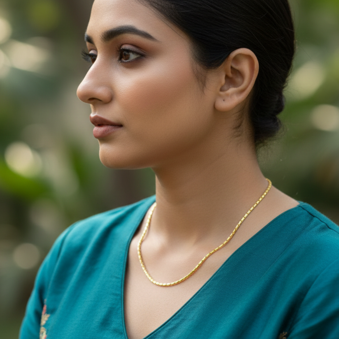 Timeless 22K yellow gold box chain necklace with sleek square links for minimalist everyday elegance. Perfect for stacking or solo wear on Meesho and Flipkart, this lightweight chain complements all outfits from casual to festive.